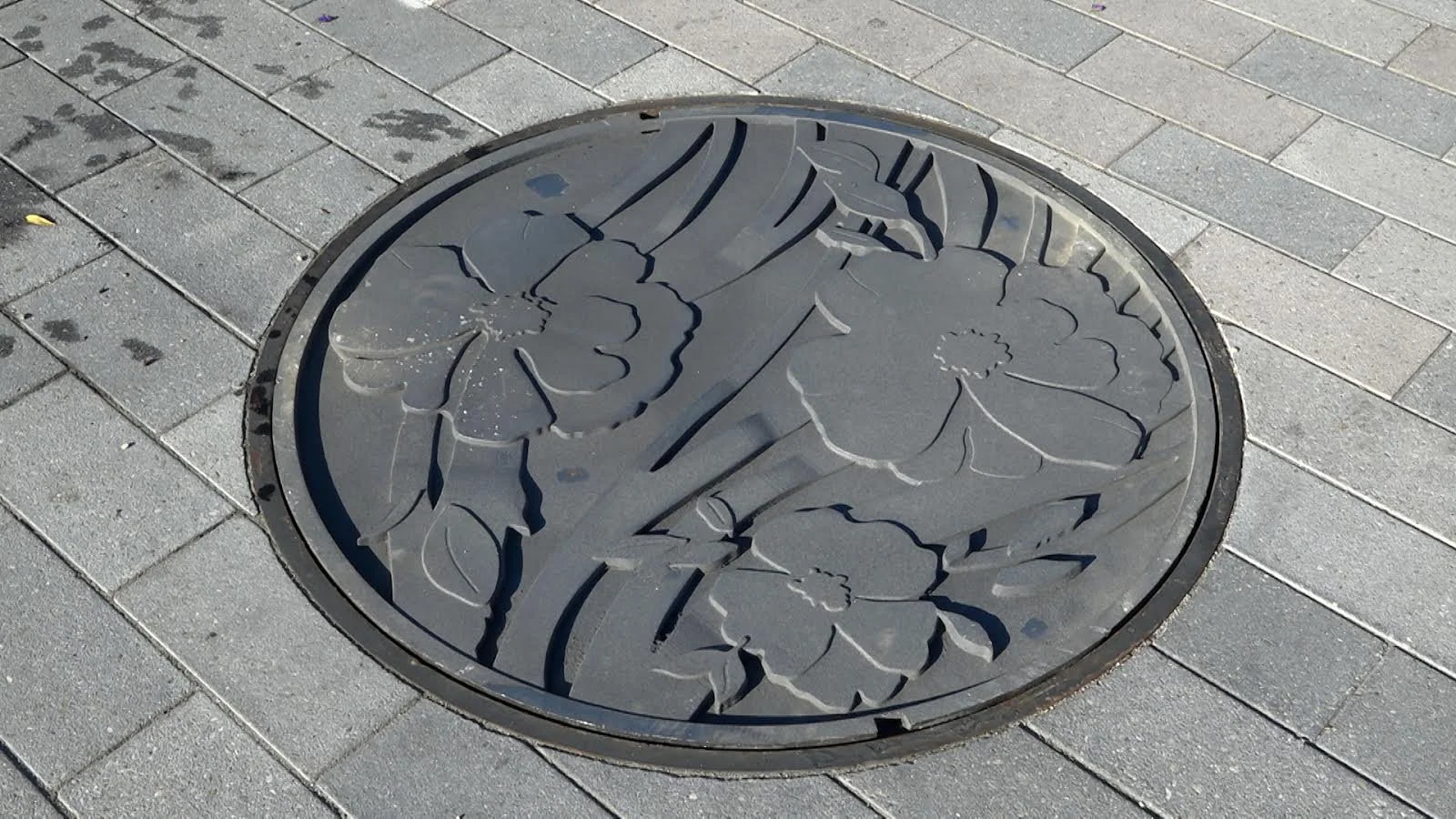 Storm drain cover designed with local flora, as part of a project in Santa Clarita, CA